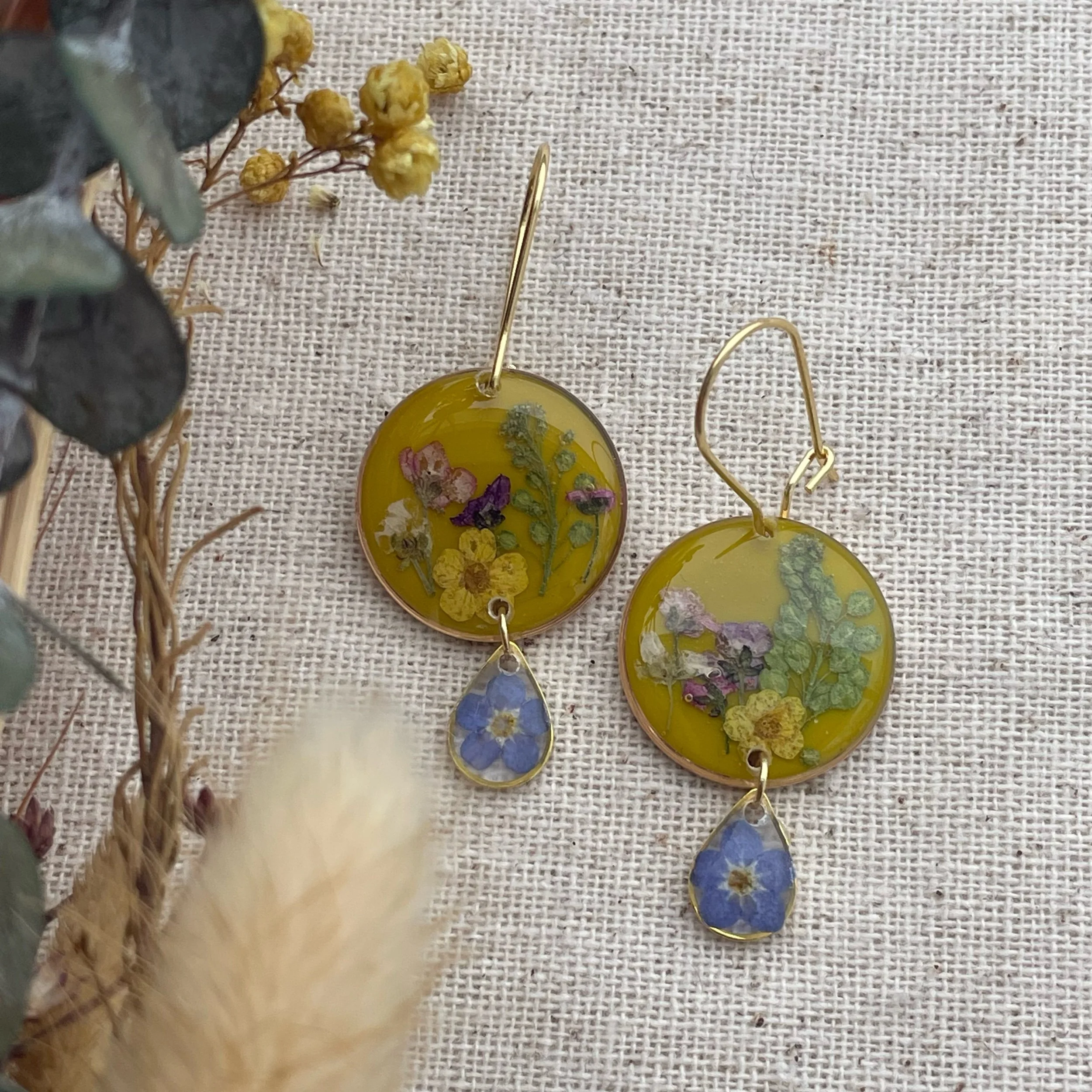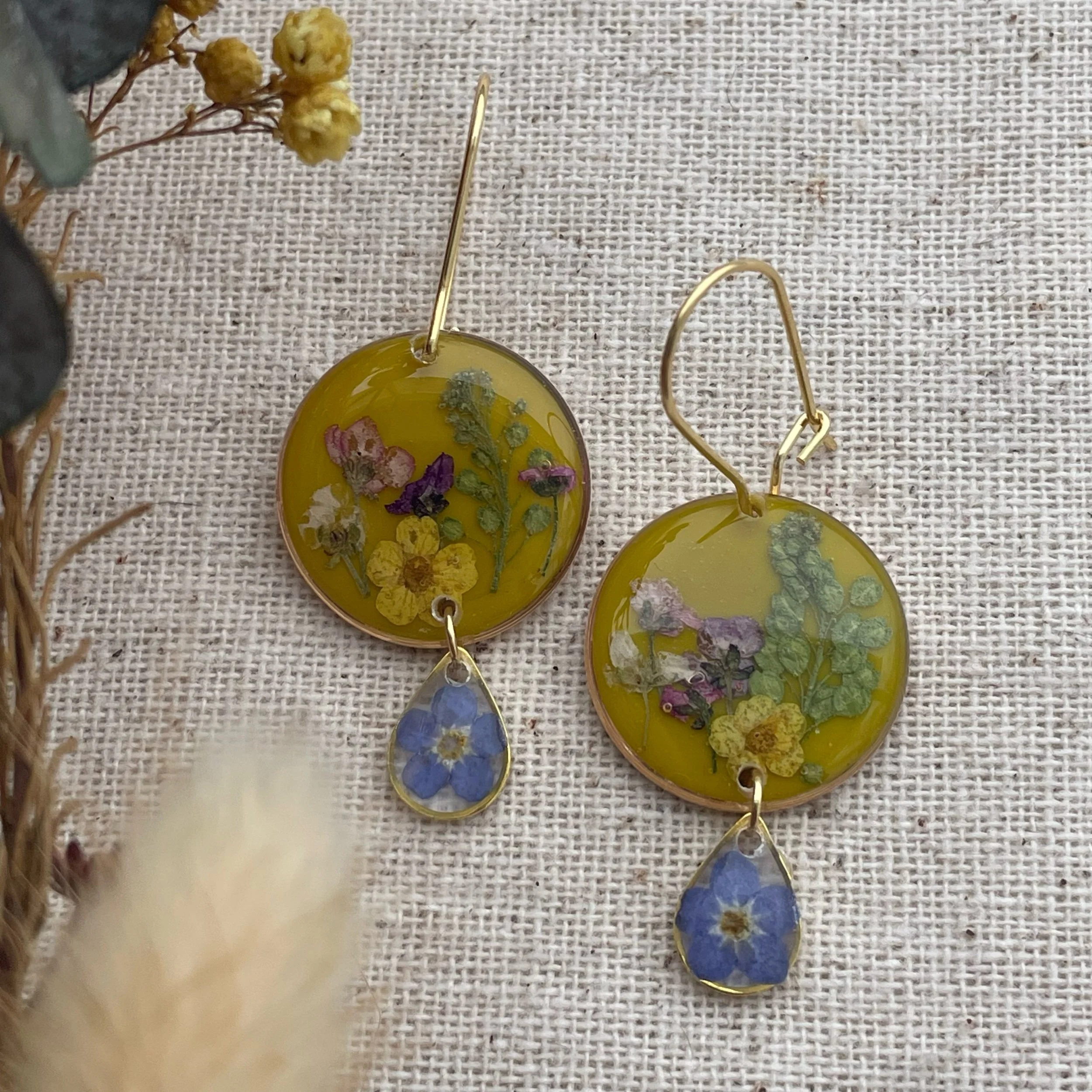A little pop of color makes any dreary day better! Combination of sweet alyssum flowers, ferns and blue forget me not flowers.
