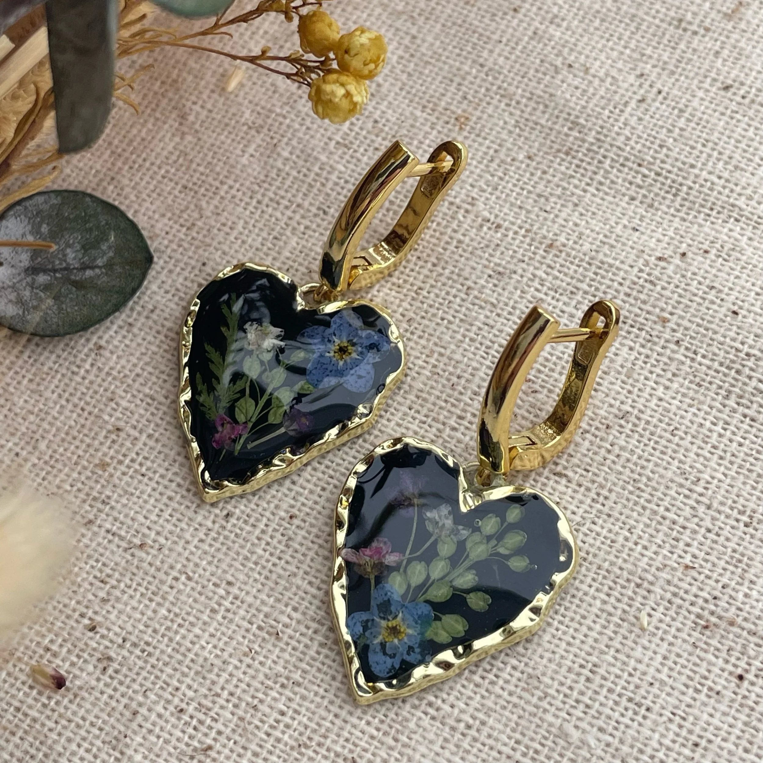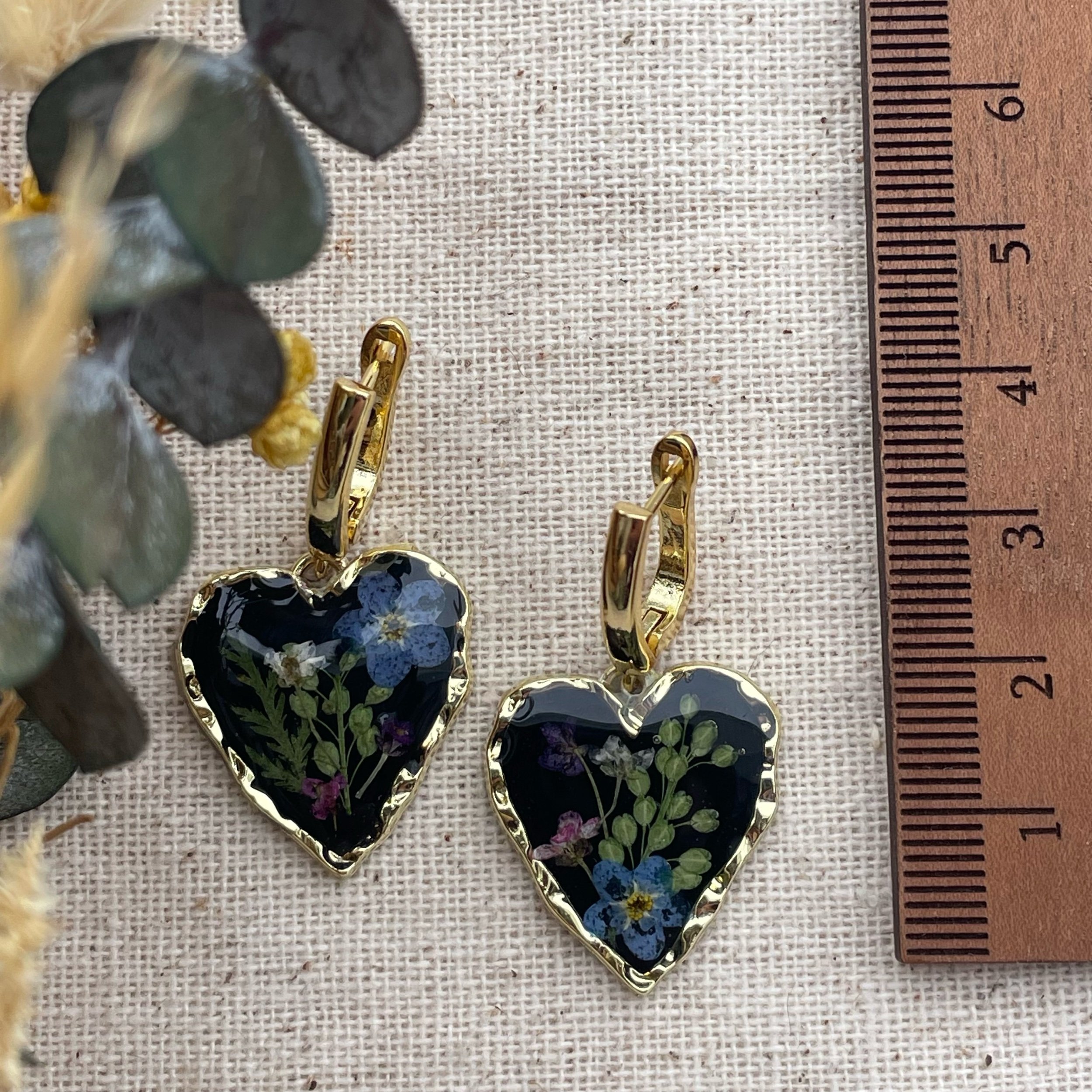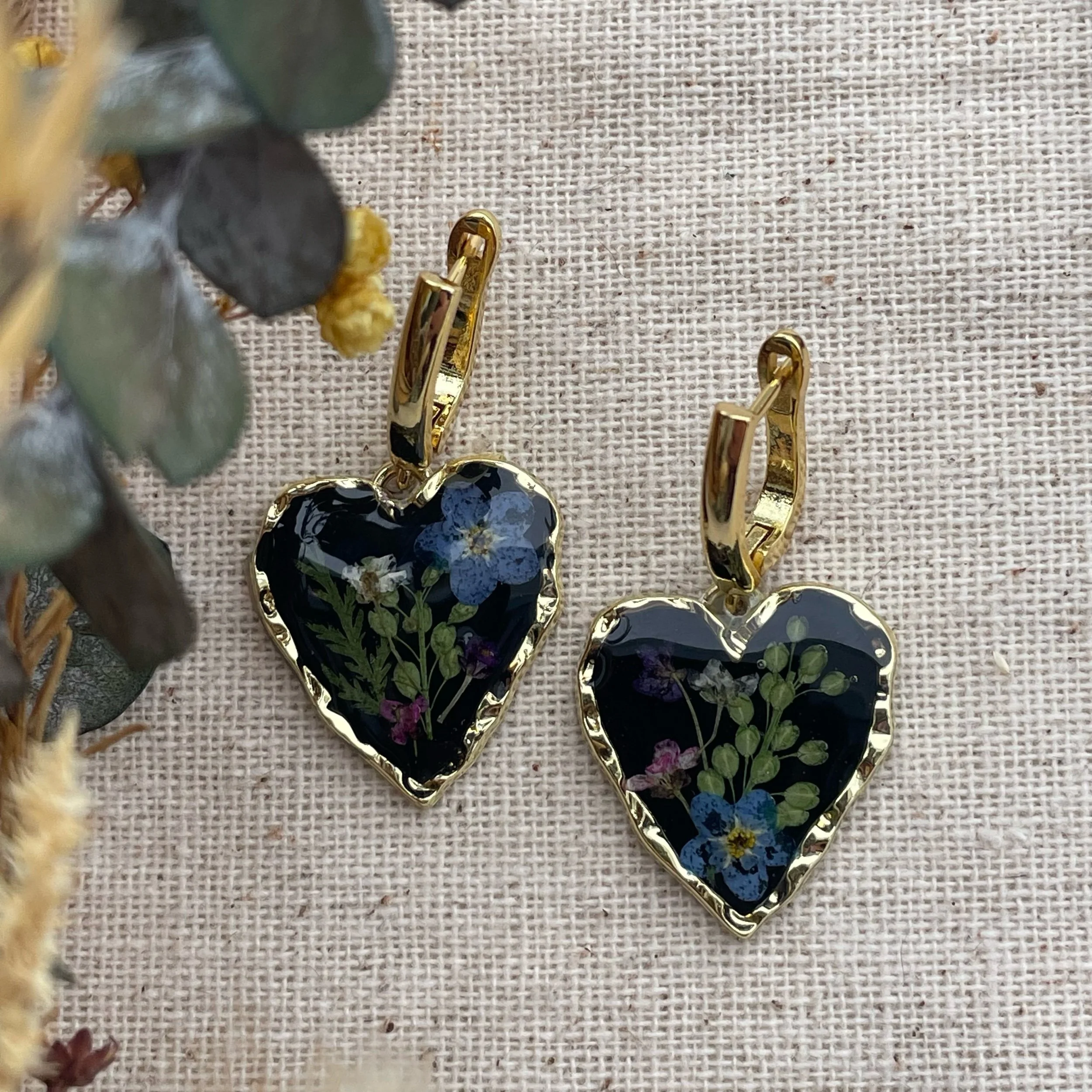 Image 1 of 3 Image 2 of 3 Image 3 of 3 Susan earrings $30.00 Heart earrings with dainty sweet alyssum and forget me not flowers in a black background.Hypoallergenic Add To Cart Added! Heart earrings with dainty sweet alyssum and forget me not flowers in a black background.Hypoallergenic