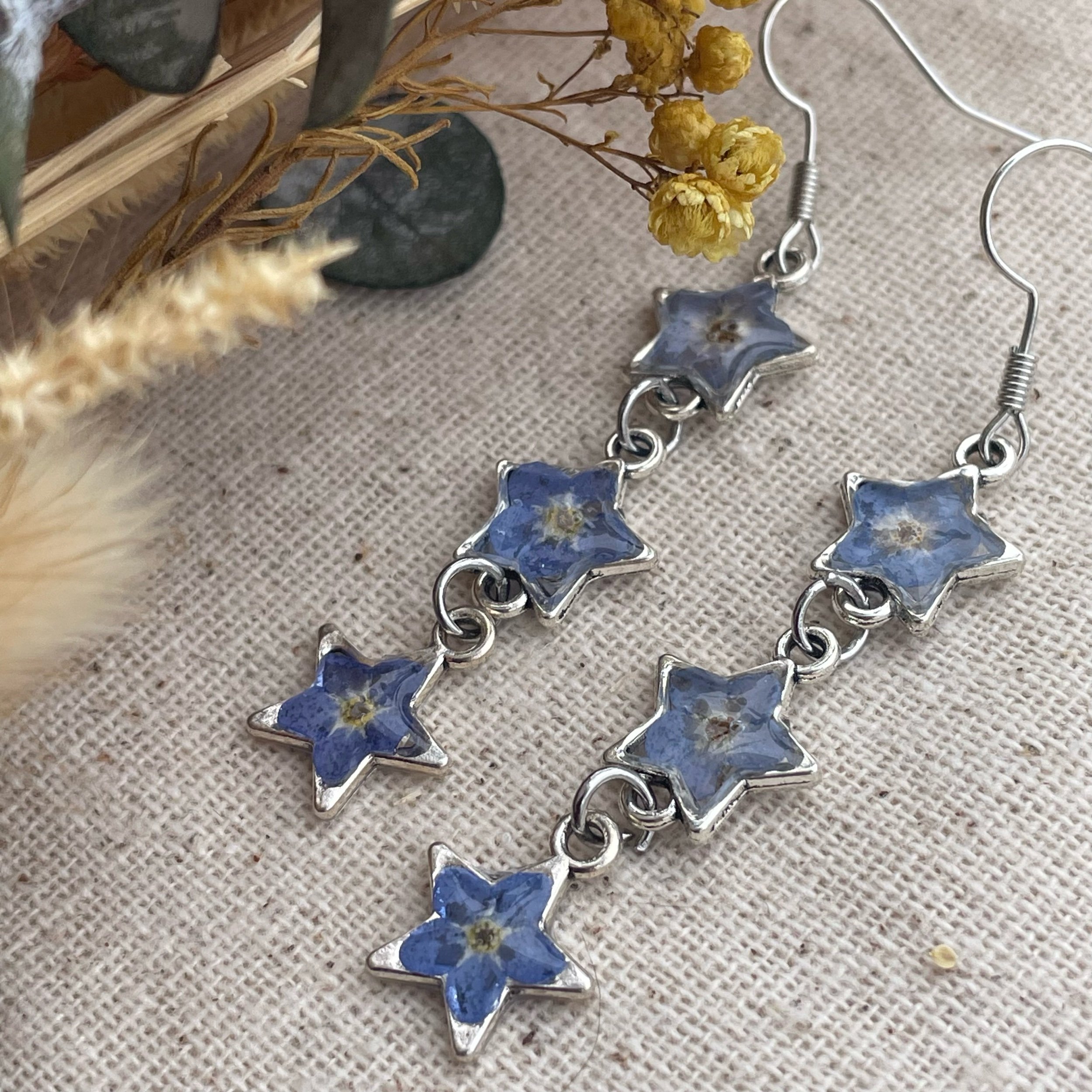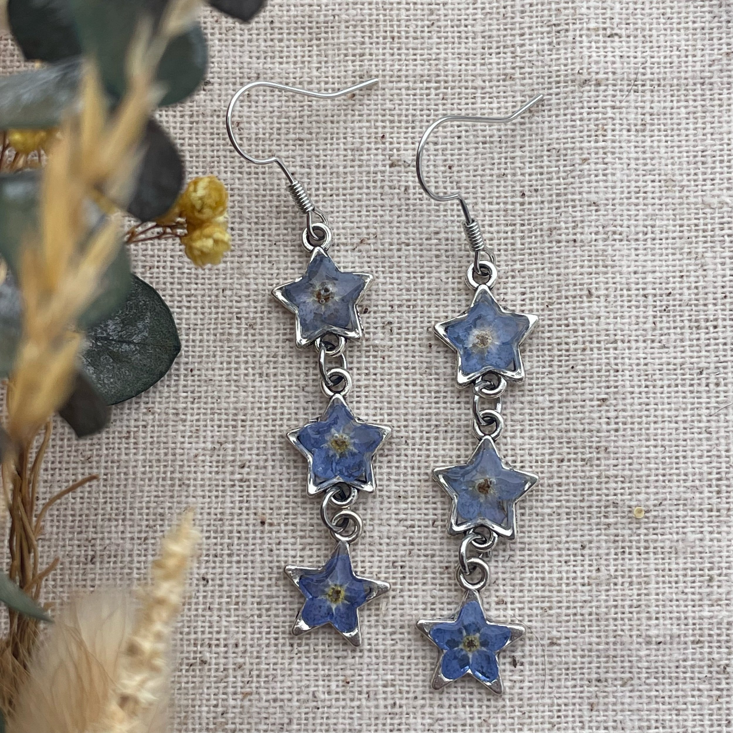 Image 1 of 3 Image 2 of 3 Image 3 of 3 Tess earrings $30.00 Starry night forget me not earrings! Hypoallergenic Quantity: Add To Cart Added! Starry night forget me not earrings! Hypoallergenic