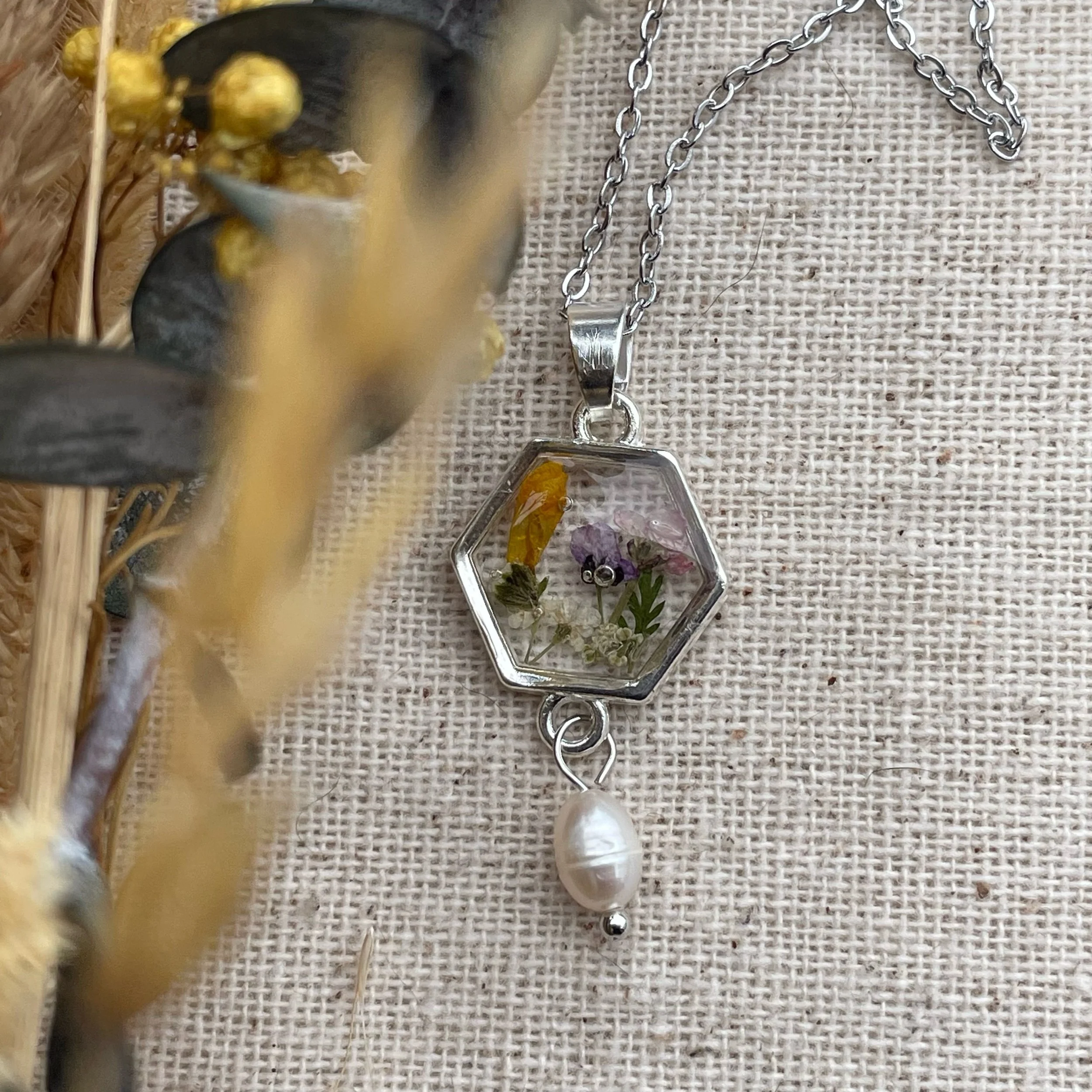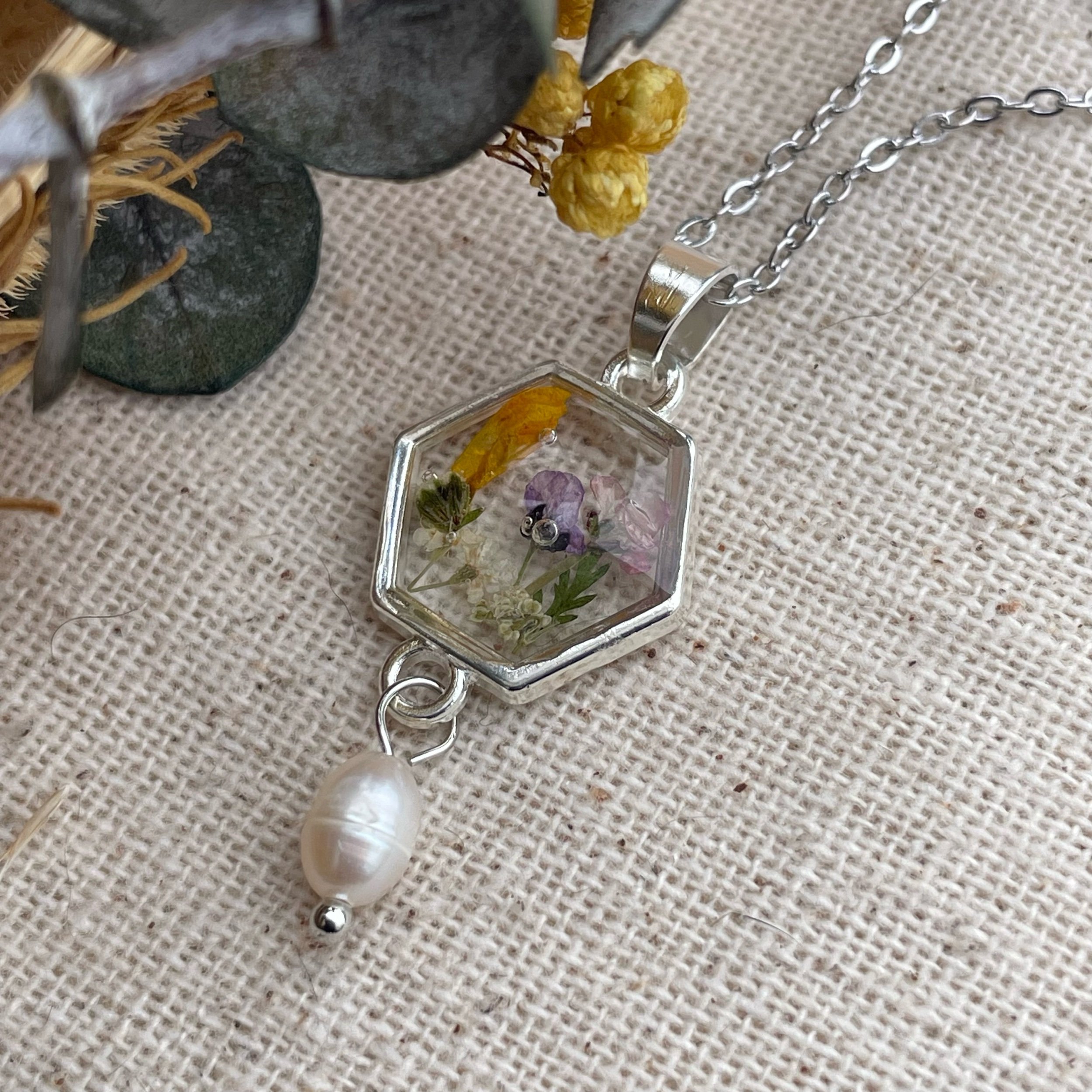 Image 1 of 3 Image 2 of 3 Image 3 of 3 Silver dangle necklace $30.00 Trapezoid necklace with sweet alyssum flowers and fresh water pearls charm.18-20” stainless steel Add To Cart Added! Trapezoid necklace with sweet alyssum flowers and fresh water pearls charm.18-20” stainless steel