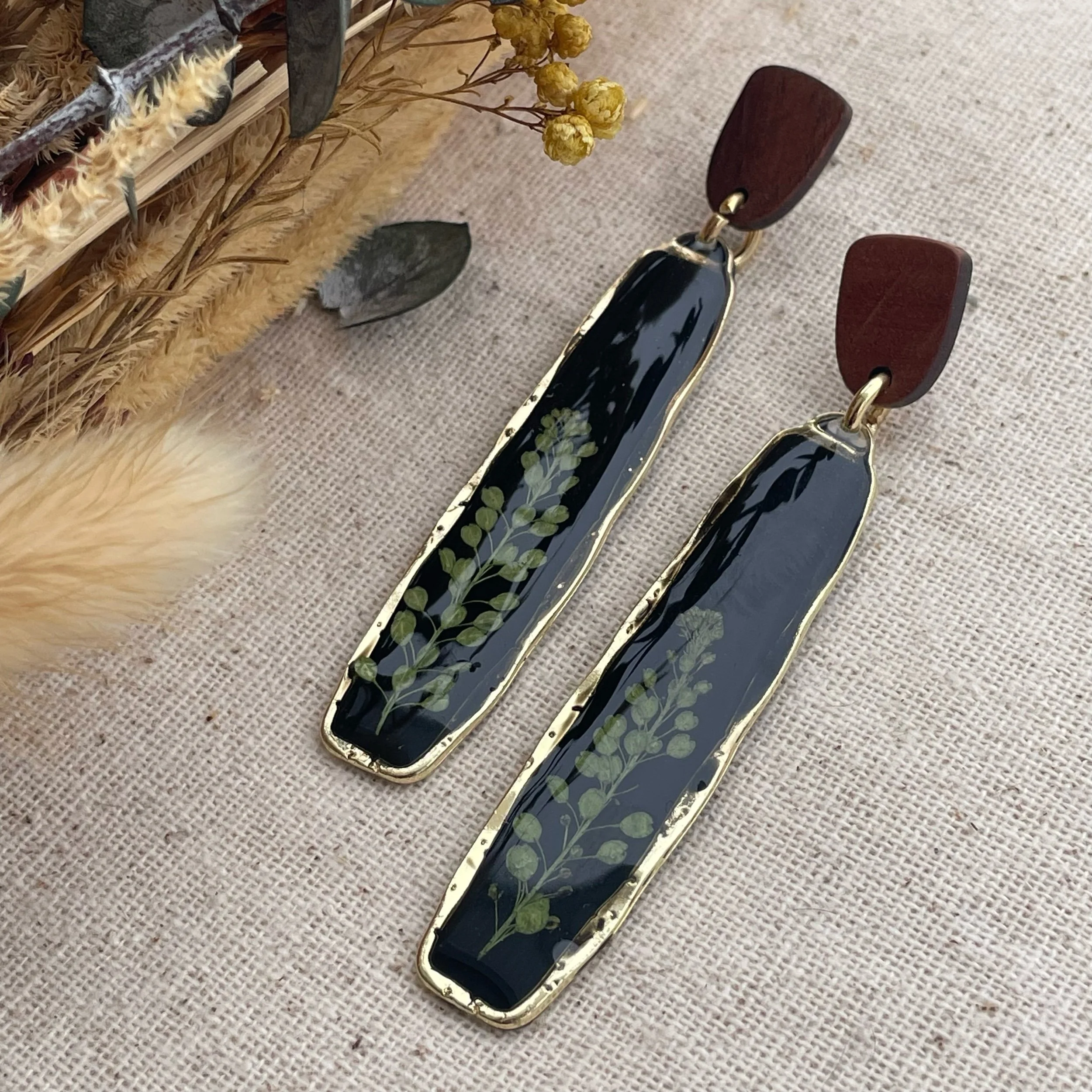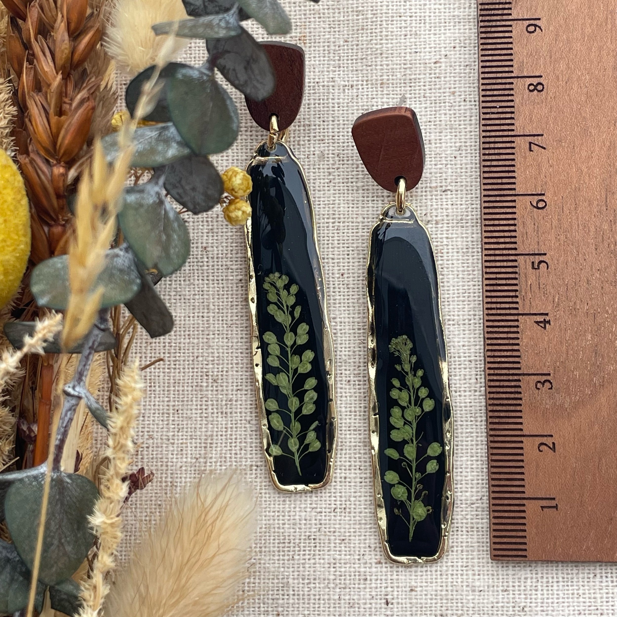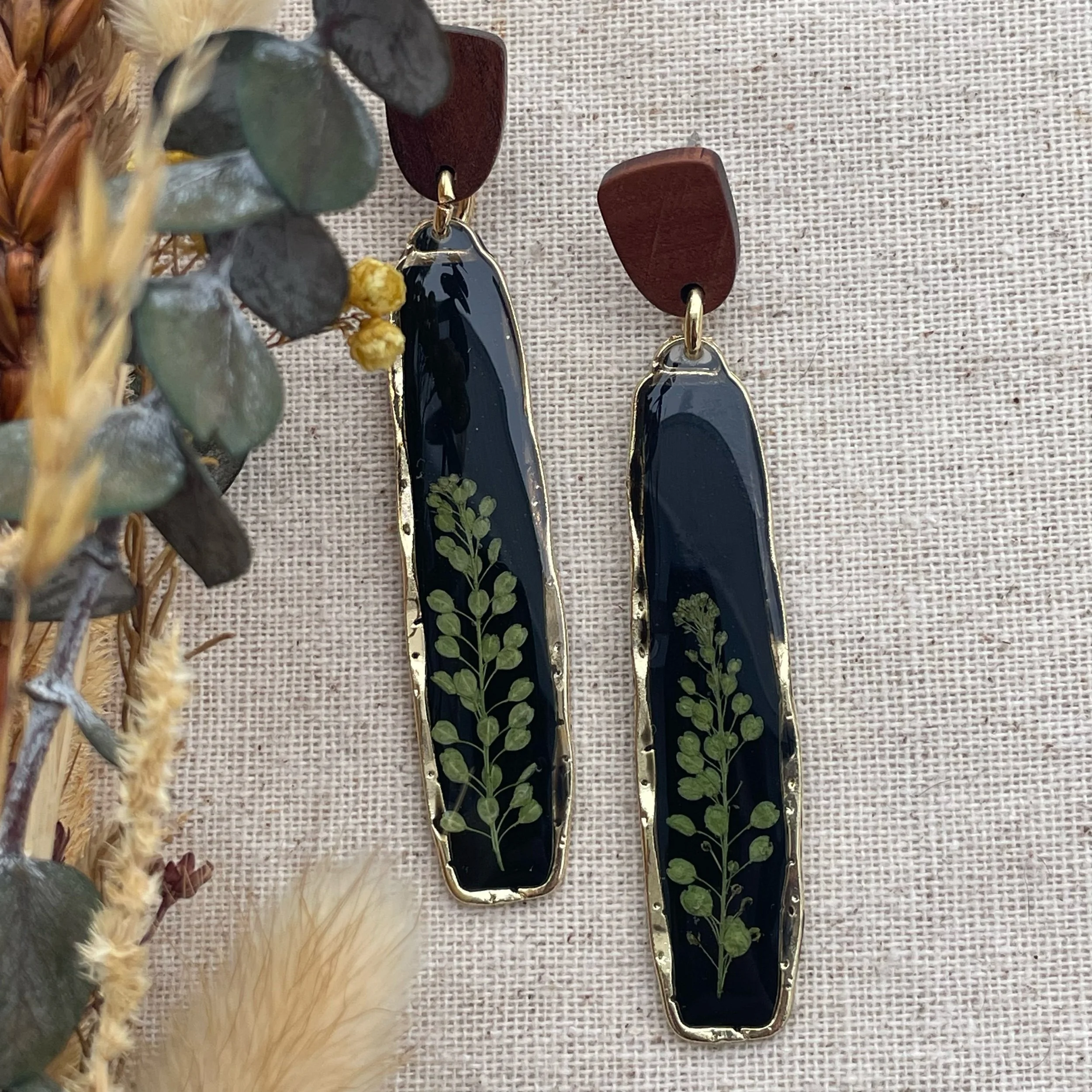 Image 1 of 3 Image 2 of 3 Image 3 of 3 Helen earrings $30.00 sold out Statement botanical earrings in a black background and wood post. hypoallergenic Sold Out Added! Statement botanical earrings in a black background and wood post. hypoallergenic