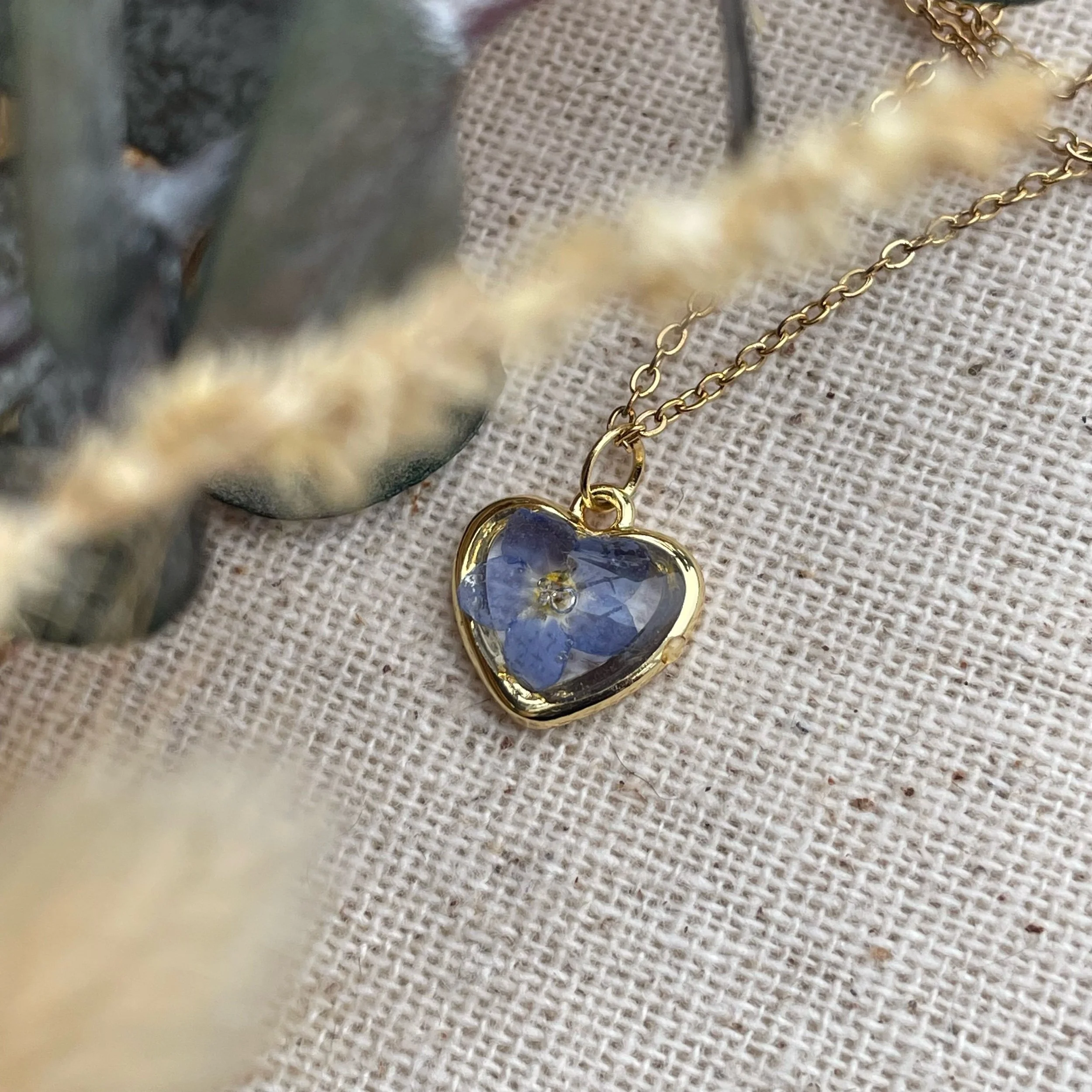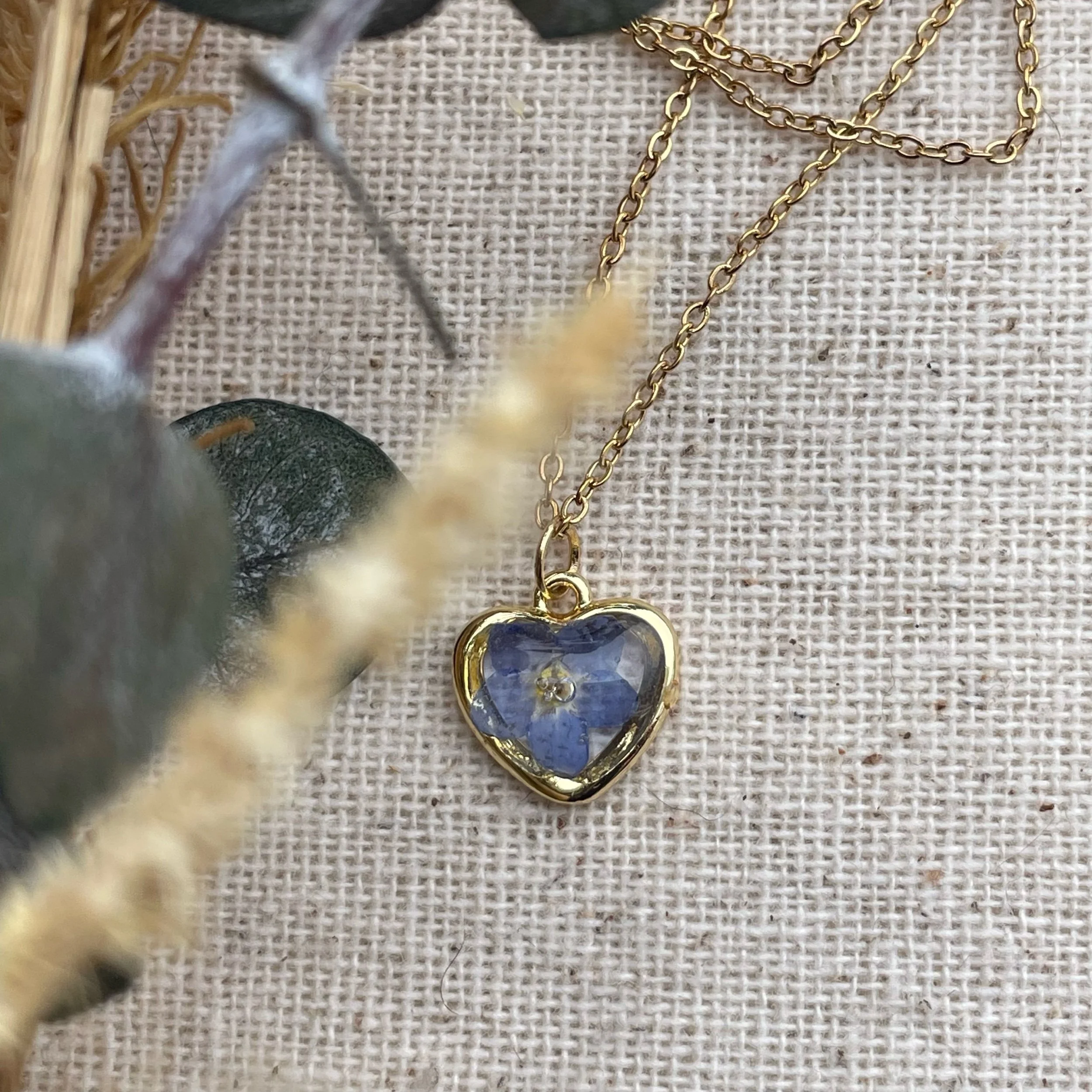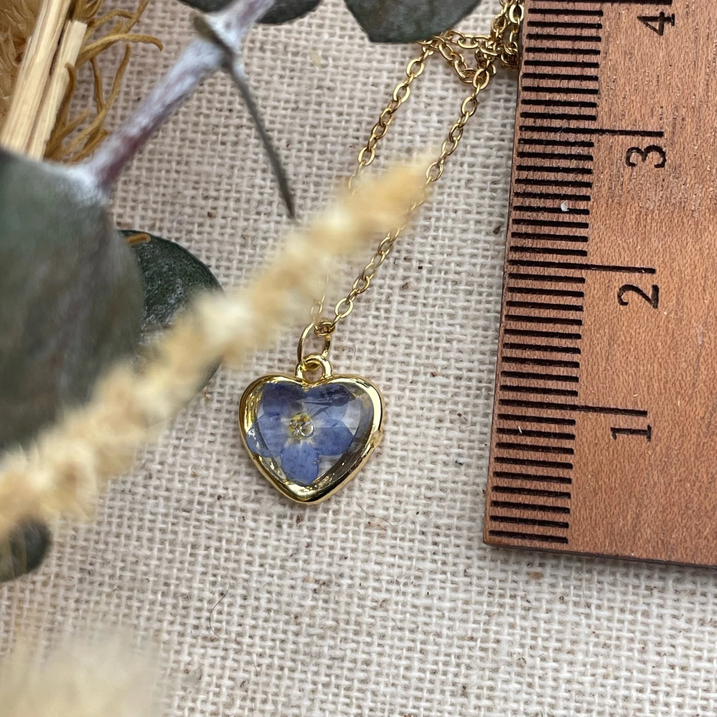 Image 1 of 3 Image 2 of 3 Image 3 of 3 Forget me not heart necklace $30.00 Dainty forget me not necklace.18-20” stainless steel plated Add To Cart Added! Dainty forget me not necklace.18-20” stainless steel plated